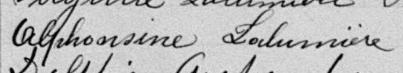 Marie Anne Virginie Lalumiere, Marie Eulalie Lalumière, Alphonsine Lalumière, Caroline De Celles et François Domina Petit résident sur l'Isle Sainte-Thérèse sur une terre de 72 arpents dont 18 arpents en pâturage, 72 arpents en valeur, 0,25 arpent en jardin ou verger ayant produit 6 minots de maïs, 8 livres de tabac et 4 arpents en production de foin ayant produit 600 bottes à Varennes, Montérégie, Québec en 1871 11, 12. Elle est d'origine ethnique française de 1871 à 1881 1, 2. Alphonsine Lalumière est de religion catholique de 1871 à 1891 1, 2, 6. Marie Anne Virginie Lalumiere, Marie Eulalie Lalumière, Alphonsine Lalumière, Caroline De Celles et François Domina Petit résident à Varennes, Verchères, Québec en 1881 13. Alphonsine Lalumière, Caroline De Celles et François Domina Petit résident dans une maison de bois d'un étage de 5 pièces dans la paroisse de Varennes, Verchères en 1891 16. Elle sait lire et écrire en 1891 6.