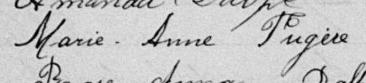 Elle est aussi connue sous le nom de Anne Fugère 1. Elle est aussi connue sous le nom de Marie-Anne Fugère 2. Elle est aussi connue sous le nom de Marie Anne Champagne 3. Elle est baptisée Marie Anne Fugères 4, 5.