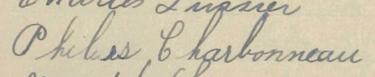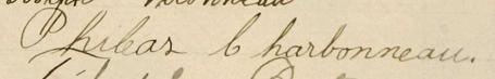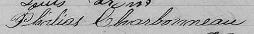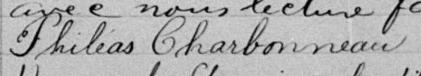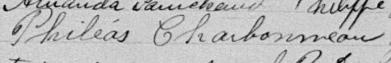 Il est aussi connu sous le nom de J. Charbonneau 1. Il est aussi connu sous le nom de Philias Charbonneau 2, 3, 4, 5, 6, 7, 8, 9, 10, 11, 12, 13, 14, 15, 16, 17, 18, 19, 20, 21, 22, 23, 24, 25, 26, 27, 28, 29, 30, 31, 32, 33, 34, 35, 36, 37, 38, 39, 40, 41, 42, 43, 44, 45, 46, 47, 48, 49, 50, 51, 52, 53. Il est aussi connu sous le nom de Philéas Charbonneau 5, 10, 11, 23, 30, 34, 35, 36, 37, 54, 55, 56, 57, 58, 59. Il est aussi connu sous le nom de Philias Charbonno 60. Il est aussi connu sous le nom de Phileas Charbonneau 45, 59, 61, 62. Il est baptisé Joseph Philias Charbonneau 63. Il signe P. Charbonneau 58. Il signe Phi. Charbonneau 42, 43, 64. Il signe Phi Charbonneau 50. Il est le fils de Jean Baptiste Charbonneau 11, 40, 58, 63 et Marie Louise Hébert 11, 63. Il est le filleul de Denise Robert 63 et Joseph Azarie Lavigne 63.