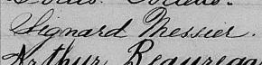 Eugénie Collet, Marguerite Patnaude, Alcidas Durocher, Signard Messier, Christophe Messier, Félix Messier, Louis Messier, Elisa Messier, Marie Sophie Collet et Félix Messier résident sur un terrain de 1 arpent sur la montée Picardie sur une terre de 105 arpents dont 36 arpents en pâturage, 30 arpents non cultivés, 1 arpent en jardin ou verger ayant produit pour une valeur de 5$, 75 arpents en culture, dont 2 arpents en production de blé de printemps ayant produit 15 minots, dont 12 arpents en production d'orge ayant produit 280 minots, dont 15 arpents en production d'avoine ayant produit 250 minots, dont 0,25 arpent en production de maïs ayant produit 10 minots, dont 0,5 arpent en production de pommes de terre ayant produit 115 minots, dont 0,25 arpent en production de betteraves ayant produit 200 minots et dont 13 arpents en production de pois ayant produit 96 minots dans la paroisse de Varennes, Varennes, Verchères, Bas-Canada en 1861 38, 39. Signard Messier est de religion catholique de 1861 à 1901 1, 2, 3, 4, 28. Signard Messier est écolier en 1871 2. Adèle Lussier, Louis Messier, Marguerite Patnaude, Marie Sophie Collet, Signard Messier, Christophe Messier, Félix Messier, Elisa Messier et Félix Messier résident sur un terrain de 185 arpents avec 1 maison, 1 bâtiment commercial et 3 bâtiments agricoles sur la montée Picardie sur une terre de 150 arpents dont 54 arpents en pâturage, 150 arpents en valeur, 0,25 arpent en jardin ou verger ayant produit 220 minots d'orge, 600 minots d'avoine, 6 minots de maïs, 40 minots de pois, 1 minot de feves, 2 minots de carottes, 50 minots d'autre fourrages, 4 minots de lin pour un total de 21 livres, 3 livres de houblon, 1 minot d'autre fruits, 500 livres de sucre d'érable, 4 arpents en production de blé ayant produit 30 minots de blé de printemps, 0,5 arpent en production de pommes de terre ayant produit 50 minots et 26 arpents en production de foin ayant produit 3000 bottes sur la montée Picardie sur la montée Picardie à Varennes en 1871 40, 41, 42, 43, 44. Il est d'origine ethnique française de 1871 à 1901 2, 3, 28. Signard Messier, Christophe Messier, Marie Sophie Collet et Félix Messier résident à Varennes en 1881 45. Signard Messier est cultivateur de 1881 à 1901 3, 7, 8, 9, 10, 11, 12, 13, 14, 15, 16, 17, 20, 21, 22, 23, 26, 27, 28. Signard Messier réside à Sainte-Anne, Varennes de 1883 à 1900 7, 21, 23. Lucie Lussier et Signard Messier résident à Sainte-Anne, Varennes de 1884 à 1892 8, 9, 10, 11, 12, 13, 14, 15, 16, 17, 20. Signard Messier est cultivateur avec 1 employé en 1891 4. Joseph Armand Azarie Messier, Marie Laura Clorinda Messier, Joseph Donat Fortunat Messier, Marie Lucie Anna Messier, Joseph Charles Signard Messier, Lucie Lussier et Signard Messier résident dans une maison de pierres d'un étage de 6 pièces dans la paroisse de Varennes, Verchères, Québec en 1891 46. Il sait lire et écrire de 1891 à 1901 4, 28. Eva Malo et Signard Messier résident à Sainte-Anne, Varennes de 1898 à 1900 22, 26, 27. Il canadienne en 1901 28. Il parle français et anglais en 1901 28. Joseph Geoffroin, Joseph Félix Abraham Raoul Messier, Joseph-Pierre-Oscar-Rosario Messier, Marie-Adrienne-Elmire Eva Messier, Marie Laura Clorinda Messier, Joseph Donat Fortunat Messier, Marie Lucie Anna Messier, Joseph Charles Signard Messier, Eva Malo et Signard Messier résident sur un terrain de 345 arpents avec 2 maisons de 7 chambres et 13 bâtiments agricoles sur le rang de Picardie, Varennes, Chambly et Verchères, Québec le 20 avril 1901 54, 55.