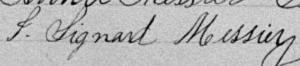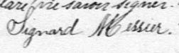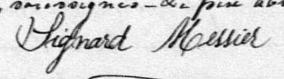 Il est aussi connu sous le nom de Signor F. Xav. Messier 1. Il est aussi connu sous le nom de Signor Messier 2, 3, 4. Il est aussi connu sous le nom de Signard Messier 5, 6, 7, 8, 9, 10, 11, 12, 13, 14, 15, 16, 17, 18, 19, 20, 21, 22, 23. Il est aussi connu sous le nom de S. Messier 24. Il est aussi connu sous le nom de J. S. Messier 25. Il est aussi connu sous le nom de Joseph-Signard Messier 26. Il est aussi connu sous le nom de Joseph Signard Messier 27. Il est aussi connu sous le nom de Seignar Messier 28. Il est baptisé François Xavier Siméas Messier 29. Il signe Sig. Messier 17. Il signe J. Signard Messier 22, 23, 26, 27, 30. Il est le fils de Félix Messier 7, 29 et Marie Sophie Collet 7, 29. Il est le filleul de Marie Sophie Girard 29 et François Xavier Cadieux 29.