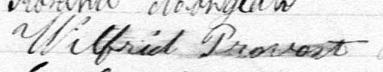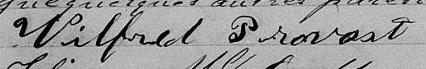 Il signe Wilfred Provost 1. Il signe V Provost 2. Il signe Welfrid Provost 3. Il est aussi connu sous le nom de Wilfrid Provost 1, 2, 3, 4, 5. Il est le fils de Pierre Provost 1, 3 et Henriette Grégoire 3.