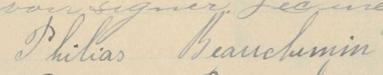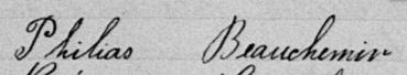 Il est aussi connu sous le nom de Philias Beauchemin 1, 2, 3, 4, 5, 6, 7, 8, 9. Il est aussi connu sous le nom de P Beauchemin 10. Il est aussi connu sous le nom de Filias Beauchemin 9. Il est aussi connu sous le nom de Hilias Beauchemin 11. Il est baptisé Charles Philias Beauchemin 12. Il est le fils de Joseph Petit 5, 12 et Sophie Langlois 5, 12. Il est le filleul de Julie Cadieux 12 et Philéas Langlois 12.