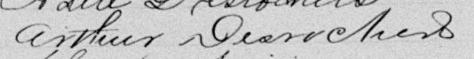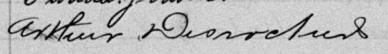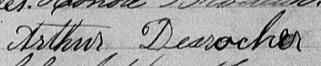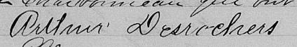 Il est aussi connu sous le nom de Arthur Desrocher 1. Il est aussi connu sous le nom de Arthur DesRochers 2. Il est aussi connu sous le nom de Arthur Brien 3. Il est baptisé Toussain Simon Hyacinthe Arthur Brien 4. Il signe Ateur Desrocher 5. Il signe Arthur Desrochers 2, 5, 6, 7, 8, 9, 10, 11, 12, 13, 14, 15. Il est le fils de Simon Brien dit Dérocher 4, 5 et Marie Désanges Adèle Decelles 4, 5. Il est le filleul de Sophie Gauthier dite Saint-Germain 4 et Hyacinthe Durocher 4.