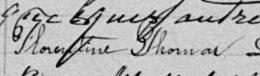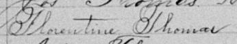 Elle est aussi connue sous le nom de Florentine Thomas 1, 2, 3, 4, 5. Elle est baptisée Marie Florentine Thomas 6. Elle est la fille de Louis Thomas 4, 6 et Victoria Dubreuil 4, 6. Elle est la filleule de Henriette Dubois 6 et Joseph Fugère 6.