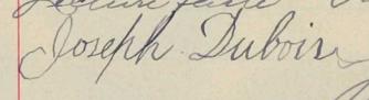 Il est aussi connu sous le nom de Joseph Dubois 1, 2, 3. Il est aussi connu sous le nom de Joseph Quintin 4, 5. Il est aussi connu sous le nom de Joseph Quintin-Dubois 6. Il est baptisé Joseph Louis Elzéar Dubois 7. Il signe J Dubois 6. Il est le fils de Felix Quintin 6, 7 et Mélina Robert 6, 7. Il est le filleul de Marie Malvina Provôst 7 et Eusèbe Robert 7.
