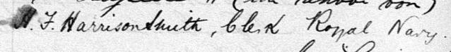 Il est aussi connu sous le nom de H. F Harrison Smith 1. Il signe H. F. Harrison Smith clerk Royal Navy 1.