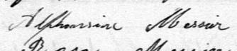 Elle est aussi connue sous le nom de Alphonsine Messier 1, 2, 3, 4, 5, 6, 7, 8, 9, 10, 11, 12, 13, 14, 15, 16, 17, 18. Elle est aussi connue sous le nom de Alphonsine Brodeur 19. Elle est baptisée Marie Alphonsine Messier 20. Elle est la fille de Charles Messier 5, 20 et Marie Sophie Cadieux 5, 20. Elle est la filleule de Céleste Dussault 20 et Joachim Messier 20.