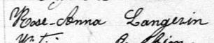 Elle est aussi connue sous le nom de Rosana Langevin 1, 2. Elle est aussi connue sous le nom de Rose-Anna Langevin 3, 4, 5, 6, 7. Elle est aussi connue sous le nom de Rose Anne Langevin 4. Elle est aussi connue sous le nom de R. A Langevin 8. Elle est aussi connue sous le nom de Rose Anna Langevin 9, 10, 11, 12, 13. Elle est aussi connue sous le nom de R. Anna Beauchemin 14. Elle est aussi connue sous le nom de Rosanna Langevin 15. Elle est aussi connue sous le nom de Roseanna Langevin 16. Elle est aussi connue sous le nom de Rose Anna Beauchemin 17. Elle est baptisée Mathilde Rose Anne Langevin 18. Elle est la fille de Joseph Langevin 4, 18 et Adélaïde Hébert 4, 18. Elle est la filleule de Mathilde Langevin 18 et Dosithée Hebert 18.
