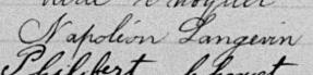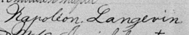 Il est aussi connu sous le nom de Napoléon Langevin 1, 2, 3, 4, 5. Il est aussi connu sous le nom de N Langevin 6. Il est baptisé Joseph Emille Napoléon Langevin 7. Il est le fils de Aimé Adrien Langevin 5, 7 et Marie Rose de Lima Choquet 5, 7. Il est le filleul de Adélaïde Hébert 7 et Joseph Langevin 7.
