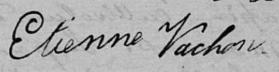 Il est présent lors du mariage de Marie Helene Vachon dite Pamerleau et Isaac Louis Vallé célébré par Antoine Villade le 23 octobre 1821 à Sainte-Marie 4, 5, 6, 7, 8, 9, 10, 11, 12. Il est présent lors du mariage de Marie Anastasie Vachon et Jean Nacké célébré par Antoine Villade le 7 novembre 1826 à Sainte-Marie 1, 14, 15, 16. Il est présent lors du baptême de Etienne Léon Vachon le 30 août 1827 à Sainte-Marie par Louis-Antoine Montminy 2.