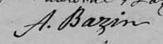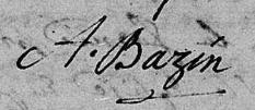 Il est aussi connu sous le nom de Antoine Bazin 1, 2, 3, 4, 5. Il signe A. Bazin 2, 3, 4. Il signe A Bazin 5.