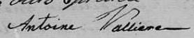Il est aussi connu sous le nom de Antoine Valliere 1. Il est le fils de Louis Vallière 1 et Marie Nadeau.