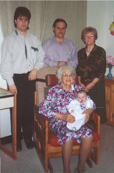 . Yvonne Lehoux, Rosanette McKaig, personne vivante, personne vivante et personne vivante sont sur la photo de famille de cinq générations 3