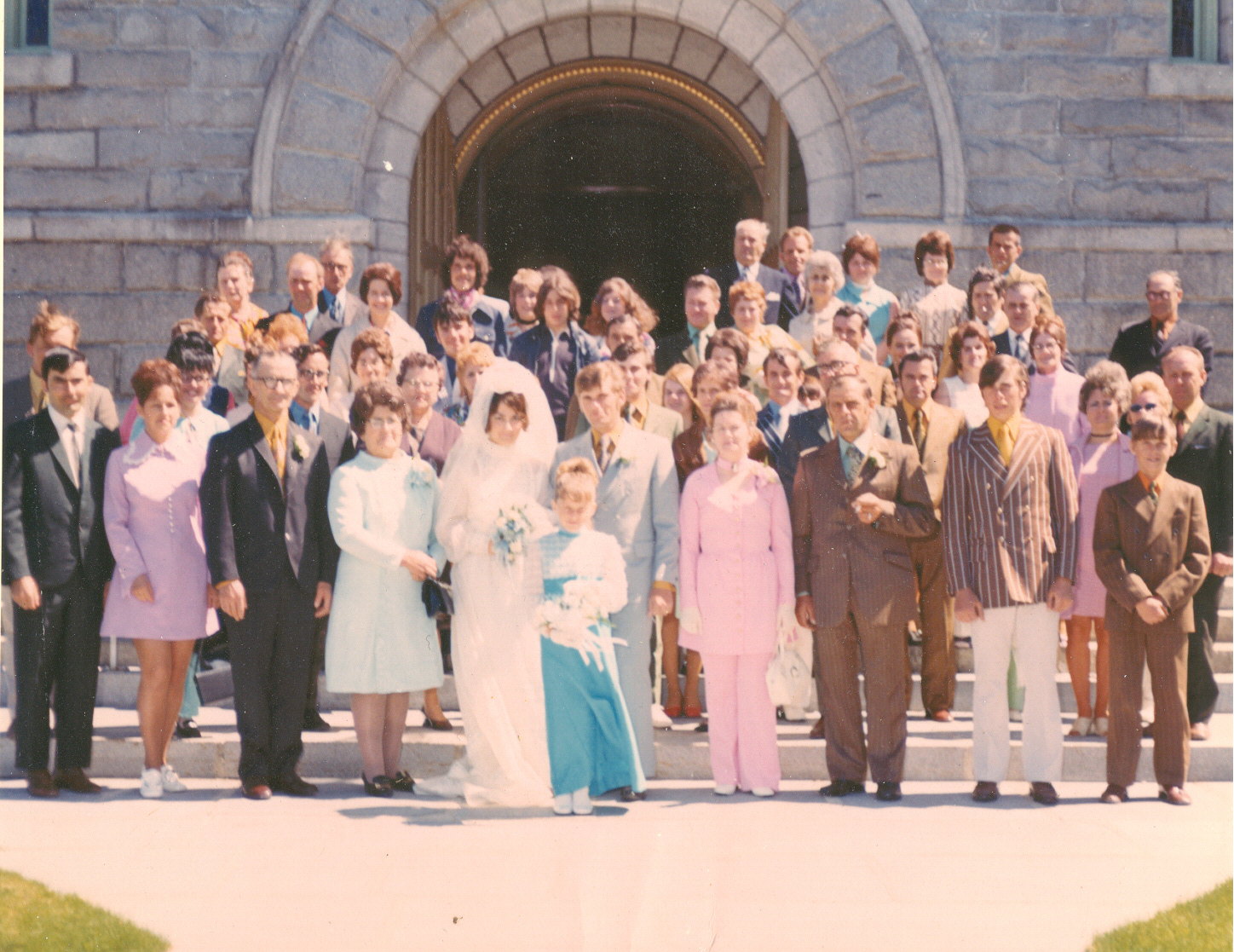 Photo de marriage: Photo de famille: Photo de couple: vingt-cinquième anniversaire de mariagePhoto de famille: assis : Evans, Antonio, Mariette Turcotte, Cynthia, Stéphan; debout : Alain, Christian, Armel, Mario, Céliane, Germain, Marilyne, Jacques, Roselyne, SylvioPhoto de quatre générations: