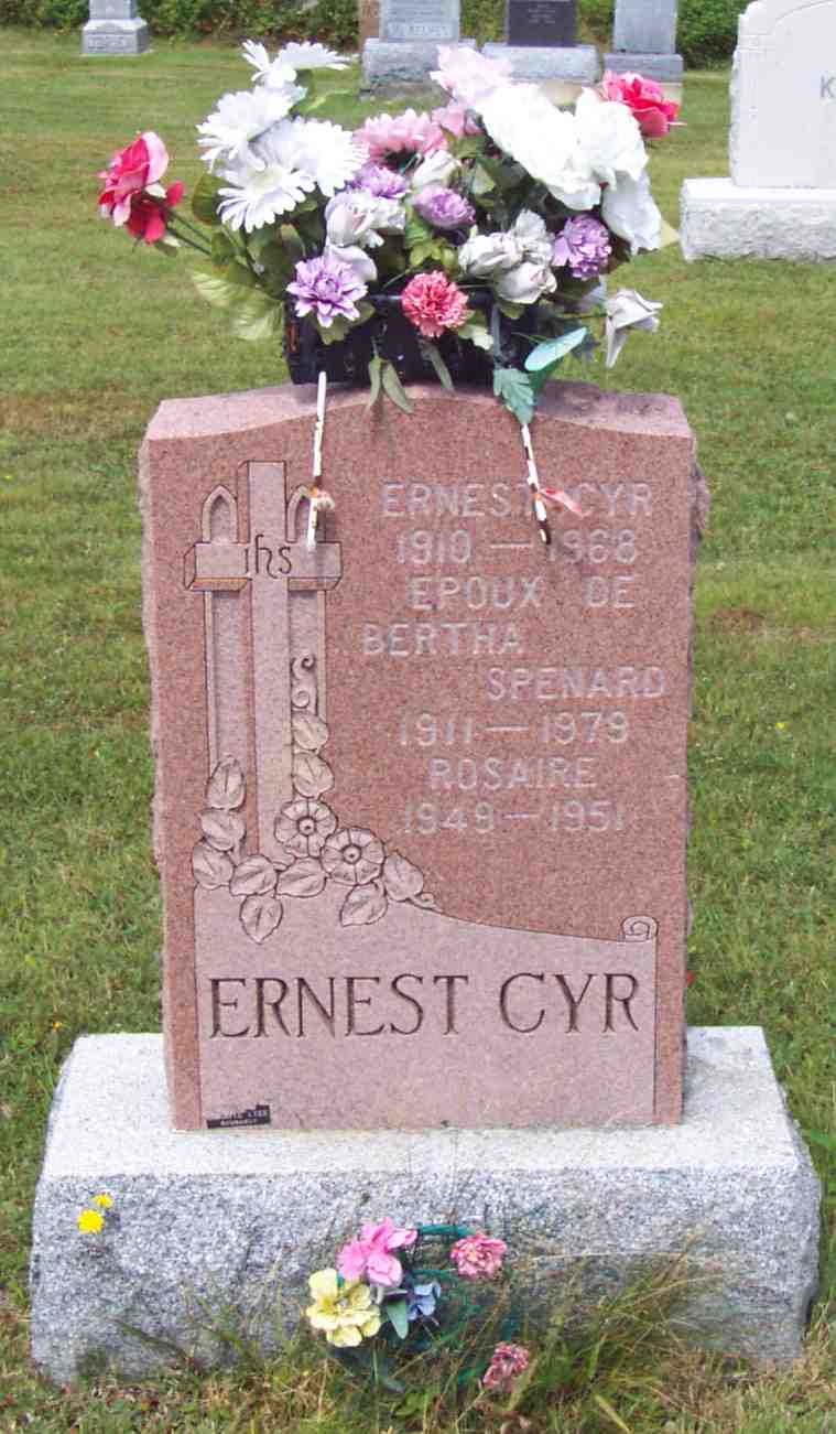 Il est aussi connu sous le nom de Ernest Cyr 1. Il est le fils de Honoré Cyr 1 et Alphonsine Daigle 1.