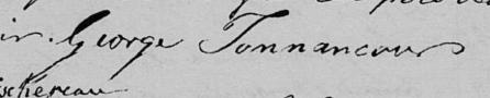 Il est aussi connu sous le nom de Écuyer Georges de Tonnancour 1. Il est aussi connu sous le nom de Écuyer George de Tonnancour 2, 3. Il est aussi connu sous le nom de Sieur George de Tonnancour 4. Il est aussi connu sous le nom de Sieur George de Tannacour 5. Il signe George Tonnancour 1, 3, 4, 5. Il signe George De Tonnancour 2. Il est aussi connu sous le nom de Georges Godefroy de Tonnancour 6. Il est le fils de Charles-Antoine Godefroy de Tonnancour 1, 7 et Reine Frémont 1, 7.