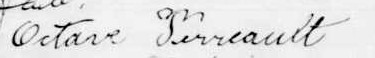 Il est aussi connu sous le nom de Octave Perrault 1, 2. Il est aussi connu sous le nom de Damase Perreault 3. Il est aussi connu sous le nom de Octave Perreault 4. Il est baptisé Octave Damase Perrault 5. Il est le fils de Pierre Perrault 6 et Emélie Demers 6. Il est le filleul de Guillaume Bernard 5 et Adèle Olivier 5.