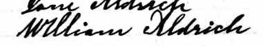 Il est aussi connu sous le nom de William Aldridge 1. Il est aussi connu sous le nom de William Thomas Aldrich 2. Il signe William Aldrich 3. Il est le fils de Arnold Aldrich et Abigail.