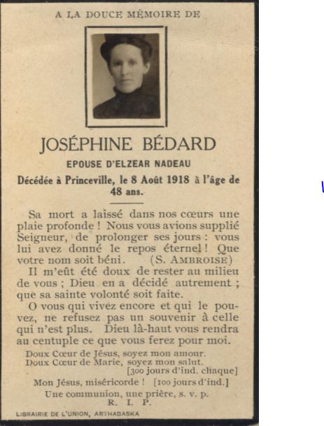 Nadeau (Laroche) Malvina [ née v. 1871 ] décédée 1946-11-14, St-Norbert