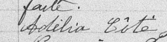 Elle est aussi connue sous le nom de Adelia Côté 1, 2. Elle est baptisée Marie Adélia Côté 3. Elle est la fille de Louis Côté 1, 4 et Éléonore Gardner 1, 4. Elle est la filleule de Michel Boucher 5 et Anny Gardneur 5.
