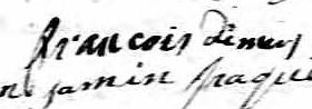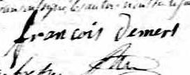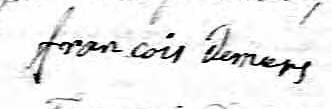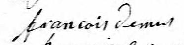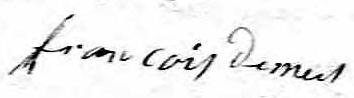 Il est aussi connu sous le nom de Jean-François Demers. Il est aussi connu sous le nom de Jean François Demers 1, 2, 3, 4, 5, 6. Il est aussi connu sous le nom de Francois Demers 7, 8, 9, 10, 11, 12, 13, 14, 15, 16, 17, 18, 19, 20. Il signe Jans Fransois Demers 1, 21. Il signe Jans Fransoies Demers 5. Il signe Jans Fransois Demrs 6. Il est aussi connu sous le nom de François Demers 11, 13, 15, 18, 19, 20, 21, 22, 23, 24, 25, 26, 27, 28, 29, 30, 31, 32, 33, 34, 35, 36, 37, 38, 39, 40, 41, 42, 43, 44, 45, 46, 47, 48, 49, 50, 51, 52, 53, 54, 55, 56, 57, 58, 59, 60, 61, 62, 63, 64, 65. Il est le fils de Joseph Marie Demers 48, 49, 54, 56 et Marguerite Demers.