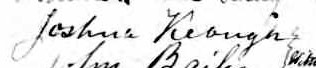 Il est présent lors du baptême de Jane Strs Telford Keough le 25 juin 1860 dans l' église méthodiste, Irlande par Benj. Cole 3. Il est présent lors du baptême de Annie Alesia Keough et Mary Emma Keough le 14 juin 1866 dans l' église méthodiste, Irlande par Révérend J. B. Keough 4. Il est présent lors du baptême de Joshua Benjamin Keough le 8 décembre 1869 dans l' église méthodiste, Ireland, Mégantic par C A Jones 5. Il est présent lors du mariage de Mary Jane Bailey et Stuart Robinson célébré par C A Jones le 8 décembre 1869 à l' église méthodiste, Ireland 6. Il est présent lors du baptême de Henrietta Ellinor Keough et Aulaud Mary Louisa Robinson le 21 janvier 1871 dans l' église méthodiste, Ireland, Chaudière-Appalaches par C A Jones 7. Il est présent lors du mariage de Ann McKillopp et Joseph Tweede célébré par C A Jones le 8 mai 1871 à l' église méthodiste, Ireland 8. Il est présent lors du baptême de John Mooney et Joseph Malcolm Louis Mooney le 8 juillet 1873 dans l' église méthodiste, Ireland par John G. Bricks 9. Il est présent lors du baptême de Helen Lousia Ann Keough le 27 octobre 1873 dans l' église méthodiste, Ireland par John G. Bricks 10.