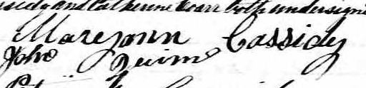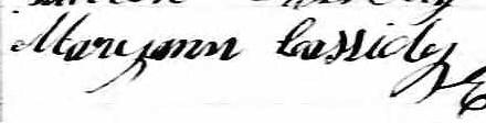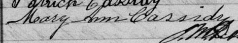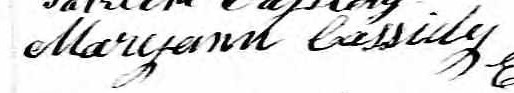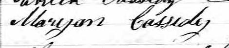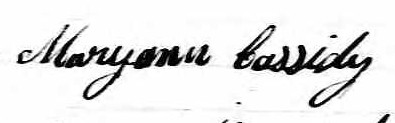 Elle est aussi connue sous le nom de Mary Cassidy 1. Elle est aussi connue sous le nom de Marianne Quinn 2. Elle est aussi connue sous le nom de Meryann Cassidy 3. Elle est aussi connue sous le nom de Mary Quinn 4. Elle est aussi connue sous le nom de Mary Ann Quinn 5. Elle est aussi connue sous le nom de Mary Ann Cassidy 6, 7. Elle est aussi connue sous le nom de Marianna Cassidy 8. Elle est aussi connue sous le nom de Mariann Cassidy 9. Elle est aussi connue sous le nom de Mary-Ann Casedy 10. Elle est aussi connue sous le nom de Mary Anne Cassidy 3, 11, 12, 13, 14, 15, 16, 17, 18, 19. Elle est baptisée Marie Anne Cassady 20. Elle signe Maryann Cassidy 11, 12, 15, 17, 19, 21, 22, 23, 24. Elle signe Maryan Cassidy 16. Elle est la fille de Patrice Cassady 16, 17, 20 et Marie Hating 17, 20. Elle est la filleule de Jane Patterson 20 et Timothee Madden 20.