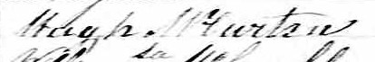 Il est aussi connu sous le nom de Hugues McCalrton 1. Il est aussi connu sous le nom de Hugues McCarton 2. Il est aussi connu sous le nom de Hugh McCartny 3. Il est aussi connu sous le nom de Hugh McCarty 4. Il est aussi connu sous le nom de Hugh McCurten. Il signe Hugh McCartney 5, 6. Il signe Hugh McCarten 7.