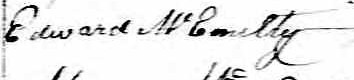 Il est aussi connu sous le nom de Edward McEnalty 1. Il signe Edward McCouelty 1. Il signe Edward McEnulty 2. Il est le fils de John McEnalty 1 et Mary Towly.