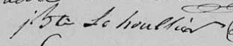 Il est aussi connu sous le nom de Jean Baptiste Lehoullier 1, 2. Il signe J Bte Lehoullier 1. Il est aussi connu sous le nom de Sieur Jean Baptiste Lehoullier 1.