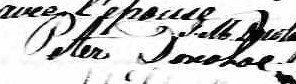 Il est aussi connu sous le nom de Peter Donaghue 1. Il est aussi connu sous le nom de Peter Donoghoe 2, 3, 4. Il est aussi connu sous le nom de Peter Donoghue 5. Il est baptisé Peter Donahy 6. Il signe Peter Donohoe 7, 8. Il signe Peter Donahue 8. Il est le fils de Edward Donoghoe 2, 4, 6 et Mary McCluskey 4, 6. Il est le filleul de Bridget Griffin 6 et Patrick Donohoe 6.