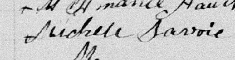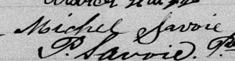 Il est aussi connu sous le nom de Miche Savoie 1. Il est aussi connu sous le nom de Michael Savoie 2. Il est aussi connu sous le nom de Michael Sarné 3. Il est aussi connu sous le nom de Michel Savois 4. Il signe Michele Savoie 5, 6, 7, 8, 9, 10, 11. Il est aussi connu sous le nom de Michael Savois 12. Il signe Michel Savoie 1, 3, 7, 8, 9, 10, 11, 13, 14, 15, 16, 17, 18, 19, 20, 21, 22, 23, 24, 25, 26, 27, 28, 29, 30, 31, 32, 33, 34, 35, 36, 37, 38, 39, 40, 41. Il est le fils de Edouard Savoie 13 et Thérèse Beaucher dite Morency 13. Il est le filleul de Marie Drouin 13 et Jean-Charles Cyr 13.