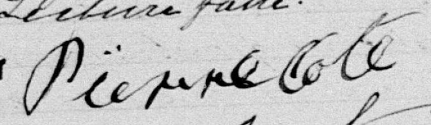 Il est aussi connu sous le nom de Pierre Côté 1, 2, 3, 4, 5. Il signe Pierre Cote 6, 7. Il signe Pierre Coté 3, 6, 8, 9, 10, 11, 12, 13, 14, 15, 16, 17, 18, 19, 20, 21, 22, 23, 24, 25, 26, 27, 28. Il est le fils de Amable Côté et Marie Charlotte Fontaine.