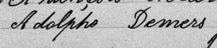 Il est aussi connu sous le nom de Adolphe Demers 1, 2, 3, 4, 5, 6, 7, 8, 9, 10, 11, 12, 13, 14, 15, 16, 17. Il est baptisé Joseph Adolphe Demers 18. Il est le fils de Honoré Demers 3, 18 et Adéline Rémillard 3, 18. Il est le filleul de Virginie Demers 18 et Jean Gabriel Desrocher 18.