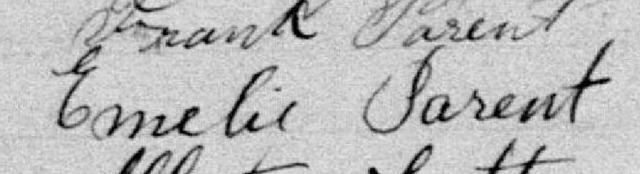 Elle est aussi connue sous le nom de Emilie Parent 1, 2, 3, 4, 5, 6, 7, 8. Elle est aussi connue sous le nom de Emmélie Parent 9. Elle est aussi connue sous le nom de Emilie Parant 10. Elle est aussi connue sous le nom de Amele Parant 11. Elle signe Emelie Parent 2. Elle signe Emélie Parent 3. Elle est baptisée Emilie Eléonore Parant 12 le 18 décembre 1864. Elle est la fille de Antoine Parant 3, 12 et Flavie Filion 3, 12. Elle est la filleule de Thérèse Gagnon 12 et Charles Paquet 12.