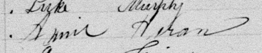 Elle est présente lors du mariage de Eliza McGinly et James Mimnaugh célébré par James Neville le 4 novembre 1884 à Saint-Sylvestre, Saint-Sylvestre 2. Elle est présente lors du mariage de Catherine Horne et Luke Murphy célébré par James Neville le 27 juin 1892 à Saint-Sylvestre, Saint-Sylvestre 4, 5, 13, 14, 15, 16, 17, 18, 19. Elle est présente lors du baptême de Mary Agnes Murphy le 20 avril 1893 à Saint-Sylvestre, Saint-Sylvestre par Révérend Père Alfred 5.