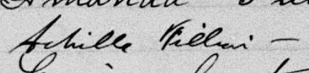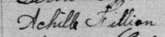 Il est aussi connu sous le nom de Achille Filion 1, 2, 3. Il est aussi connu sous le nom de Achille Phillion 4. Il signe Achille Fillion 2, 5, 6, 7, 8, 9, 10, 11, 12. Il est baptisé Louis Achille Fillion 13 le 16 novembre 1865.