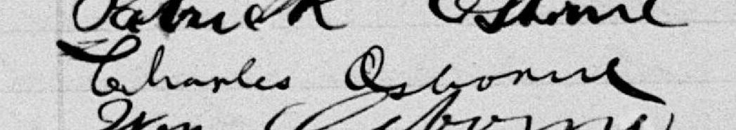 Catharine Osborne, Laurence Osborne, Charly Osburn, Joseph Osburn, John Osborne, Patrick Arthur Osborne, William Osborne, Eleonar Cassidy et Joseph Osborne résident sur un terrain de 180 arpents avec 1 maison et 2 bâtiments agricoles sur les lots 41 et 42 sur le rang Sainte-Marie Sud sur une terre de 180 arpents dont 40 arpents en pâturage, 100 arpents en valeur ayant produit 20 minots d'orge, 100 minots d'avoine, 20 minots de sarrasin, 1 minot de lin pour un total de 10 livres, 1 arpent en production de blé ayant produit 9 minots de blé de printemps, 2 arpents en production de pommes de terre ayant produit 200 minots et 18 arpents en production de foin ayant produit 1500 bottes à Saint-Sylvestre en 1871 7, 8, 9. Charly Osburn est de religion catholique de 1871 à 1881 1, 3. Il est d'origine ethnique irlandaise de 1871 à 1881 1, 3. Charly Osburn est écolier en 1881 1. Charly Osburn, Mary Ann Cassidy et John Quinn résident à Saint-Sylvestre en 1881 10.
