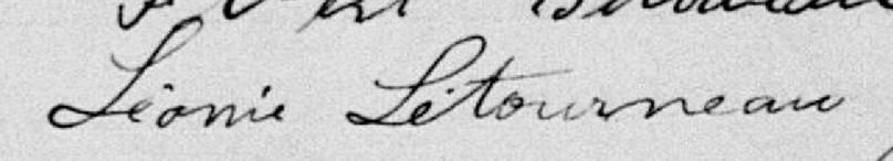 Elle est aussi connue sous le nom de Léonie Létourneau 1, 2, 3. Elle est aussi connue sous le nom de Leonie Letourneau 4, 5. Elle est baptisée Marie Léonie Létourneau 6. Elle signe Leonie Létourneau 4.