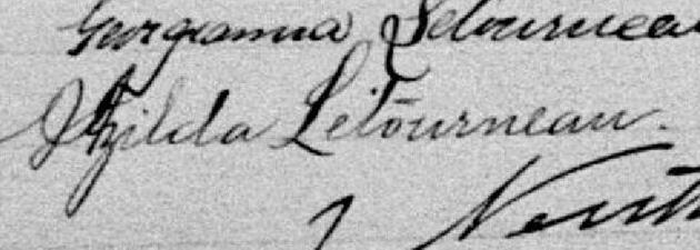 Elle est présente lors du baptême de Marie Rose Blanche Bertha Letourneau le 8 août 1888 à Saint-Sylvestre, Saint-Sylvestre par James Neville 2. Elle est présente lors du baptême de Jos Real Letourneau le 15 juin 1890 à Saint-Sylvestre, Saint-Sylvestre par James Neville 6. Elle est présente lors du baptême de Marie-Louise Létourneau le 25 août 1893 à Saint-Sylvestre, Saint-Sylvestre par James Neville 7. Elle est présente lors du mariage de Georgina Létourneau et Docteur Philippe Dubé célébré par Pierre Savoie le 26 avril 1894 à Saint-Sylvestre, Saint-Sylvestre 8, 9, 15, 16, 17. Elle est présente lors du baptême de Oscar Létourneau le 6 septembre 1895 à Saint-Sylvestre, Saint-Sylvestre par Abbé Joseph-Olivier-Edmond Verret 8.
