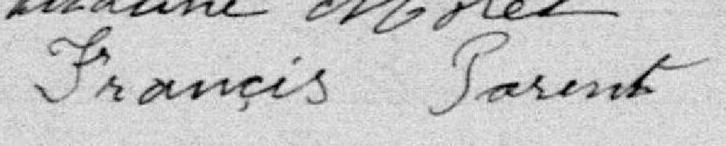 Il est aussi connu sous le nom de Francois Parant 1. Il est aussi connu sous le nom de Francis Parrant 2. Il est baptisé Thomas François Parant 3. Il signe Francis Parent 4, 5, 6, 7, 8. Il est le fils de Antoine Parant 3 et Flavie Filion 3. Il est le filleul de Aubeline Derouin 3 et Thomas Fillion 3.