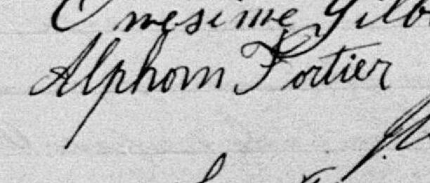 Il est aussi connu sous le nom de Alphonce Fortier 1. Il est baptisé Joseph Alphonse Theophile Fortier 2. Il signe Alphonse Fortier 3, 4, 5. Il signe Alphom Fortier 6. Il est le fils de Ambrose Fortier 2 et Flore Pajot 2. Il est le filleul de Sophie Sylvain 2 et Joseph Pageau 2.