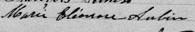 Elle est aussi connue sous le nom de Marie Aubin 1. Elle est aussi connue sous le nom de Marie-Eléonore Aubin. Elle signe Marie Eléonore Aubin 2, 3, 4, 5, 6. Elle signe Marie Eleonore Aubin 5. Elle est la fille de Jean-Baptiste Aubin 4 et Théotiste Boucher 4.