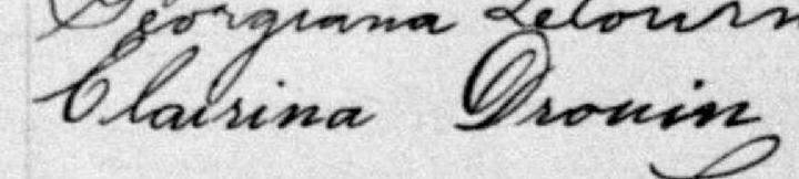 Elle est aussi connue sous le nom de Clarina Drouin 1. Elle est aussi connue sous le nom de Clairina Drouin 2.