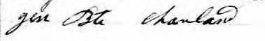 Il est aussi connu sous le nom de Jean Baptiste Francoeur dit Charland 1. Il est aussi connu sous le nom de Jean Charland 2. Il est aussi connu sous le nom de G B Charland 3. Il est aussi connu sous le nom de Gen Baptis Charlan 4. Il est aussi connu sous le nom de J B Charland 5, 6, 7. Il est aussi connu sous le nom de J Bte Charland 8. Il est aussi connu sous le nom de J. Bte Charland 9. Il est aussi connu sous le nom de Jean Baptiste Charlan 10. Il est aussi connu sous le nom de Jean Baptiste Charlant 11. Il est baptisé Jean Baptiste Charland 6, 7, 12, 13, 14, 15, 16, 17, 18, 19, 20, 21, 22, 23, 24, 25, 26, 27, 28, 29, 30, 31. Il signe J B Charlan 1. Il signe Jen Baptiz Charlan 13, 32. Il signe G B Charlan 14. Il signe Jen Baptis Charlan 15, 16, 17. Il signe Jen Baptis Charland 18. Il signe Jenbatis Charland 19. Il signe J Batiste Charland 20. Il signe J Bt Charland 21. Il signe Jen Bt Charland 22, 23. Il signe Gen Bte Charland 25, 26. Il signe Jen Bte Charland 27, 29. Il signe Jen Baptiste Charland 28.