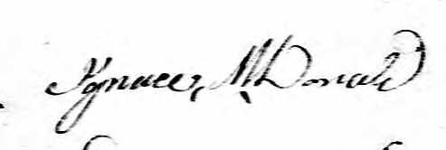 Il est aussi connu sous le nom de Ignace M. Donald 1. Il est aussi connu sous le nom de Ignace McDonell 2. Il est aussi connu sous le nom de Ignace McDonnal 3. Il est aussi connu sous le nom de Angus McDonald 4. Il signe Ignace McDonald 1, 2, 5, 6. Il signe Ignace MDonald 3, 7. Il signe Ignace MDonade 7.