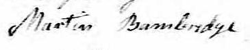Il est aussi connu sous le nom de Sieur Martin Bambridge 1, 2. Il est aussi connu sous le nom de Martin Newman Bambridge 3, 4. Il est aussi connu sous le nom de Martin Bambridge 1, 2, 5, 6, 7, 8, 9, 10, 11, 12, 13, 14, 15, 16, 17, 18, 19, 20, 21, 22, 23, 24, 25, 26. Il est le fils de Newman Bambridge 5, 6 et Elizabeth Labadie 5.