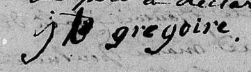 Il est aussi connu sous le nom de Jean-Baptiste Gregoire 1. Il est aussi connu sous le nom de Jean Baptiste Gregoire 2, 3, 4, 5, 6, 7, 8, 9, 10, 11, 12, 13, 14, 15, 16, 17. Il est aussi connu sous le nom de Jean Baptiste Grégoire 5, 12, 18, 19, 20, 21, 22, 23, 24. Il signe Jean Grégoire 2, 10, 11, 12, 25, 26, 27, 28, 29, 30, 31. Il signe J B Gregoire 3. Il signe Jean Jregoire 19. Il signe Jean Grègoire 13. Il est aussi connu sous le nom de Jean Gregoire 1, 4, 5, 6, 7, 8, 18, 22, 25, 26, 29, 30, 31, 32, 33, 34, 35, 36, 37, 38, 39, 40, 41. Il est le fils de Louis Gregoire 1, 7, 10, 11, 25, 26, 30, 31, 32, 34, 38, 39 et Marie-Ursule Levasseur.