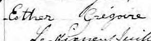 Elle est aussi connue sous le nom de Esther Grégoire 1, 2, 3, 4. Elle est baptisée Marie Esther Grégoire 5. Elle est la fille de Nicolas Grégoire 2, 5 et Flavie Martel 2, 5. Elle est la filleule de Marie Esther Demers 5 et Alexandre Vermet 5.